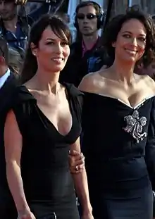 ![]() Carmen Chaplin (right), with her sister Dolores in Deauville in 2011 | |
