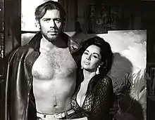 Writers Raúl Manrupe and María Alejandra Portela characterized the film as having "black and white footage without any explanation, red as the dominant color and camp carried to its ultimate consequences."[3] Throughout the film, the female body is objectified as "a piece of meat", featuring overlays of images of cuts of meat and Sarli's body.[4] Writer Tamara Drajner Barredo felt that "this identification of the female body with the meat has as a correlate an identification of the sexual desire with an animalized and irrational carnal desire."[4] This is made explicit in the final dialogue, in which Antonio tells Delicia that they raped her "to satisfy the animal instinct that we all carry inside. But without soul, without love."[4] Bó always maintained that his films dealt with social issues, evident in early films such as Thunder Among the Leaves from 1958 and Sabaleros from 1959.[4] However, this intention of social criticism and realism of his first films was diluted as the director and Sarli acquired national and international recognition, replacing them with traditional melodrama, crime and picaresque, where the erotic scenes "acquired their own autonomy."[4] Nevertheless, in a 1974 interview for magazine Siete Días Bó still claimed that his films "deal with social issues, but since Isabel acts in them, sex has implications in the argument."[4] The social problem depicted in Carne is that of violence; it might even be argued that the film seeks to draw attention to violence against women.[5] In this matter, Bó stated: