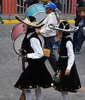 The carnival is led by a “General en Jefe de las Fuerzas o Ejercicios Carnavalesco” who is in charge of leading all four days of festivities. S/he is selected at a meeting which occurs just after the end of the current year's carnival.[3] Participants can prepare for up to six months in advance. The garments are still locally made, if not by the participants, then by local craftspeople.[1] Children are also part of the festivities, with their own costumes and small muskets.[5]