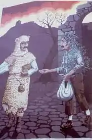 ![]() Mural depicting the legend of the hermit begging the bear for alms | |