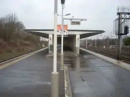 Carpenders Park is a railway station located between the Hertfordshire suburb of Carpenders Park and the South Oxhey housing estate, 3 km (1.9 mi) south of Watford Junction on the Watford DC Line. The station is an island platform reached by a subway. This has exits to both the Carpenders Park (east) and South Oxhey (west) estates. London Overground services from London Euston to Watford Junction currently serve this station.
