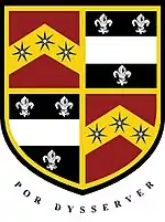 Carre's is a state-run selective grammar school. It converted to an Academy and reopened on 1 August 2011; it is governed by The Robert Carre Trust and converted without sponsorship.[57] As of 2015, the student body is made up of 815 pupils aged 11–18.[57] The school admits boys on a selective basis for years 7–11 and has a co-educational Sixth Form; there are 60 girls on roll as of 2015. The majority of pupils come from White British backgrounds and very few pupils speak English as an additional language. The number of pupils supported through allowances, including those eligible for free school meals (2.3%), is below average, as is the number of students with learning disabilities.[57][58] Pupils are allocated into houses based on their forms. The first house system at Carre's consisted of four sets: scarlet, maroon, green and blue. They became houses in 1933 as Carre, Bristol, Lafford and Welby,[59] named respectively after its founder, the Earls of Bristol, an old name for Sleaford, and Richard Welby, who owned the Gedney lands purchased by Carre.[60]