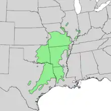 | Natural range of Carya texana | |