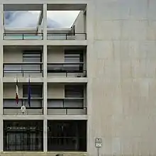 The Ministry for Cultural Heritage blocked the auction based on its important artistic character.[12] In 1957, it was assigned to the Command of the VI Legion of the Finance Police,[13] thanks to the intervention of the architect's brother, Senator Attilio Terragni.[14] In 1959, a further ministerial decree was issued to protect the context of the Como Cathedral and the surrounding buildings, among them the Casa del Fascio. The decree was probably necessary; the artistic protection law only applied to buildings over 50 years old.[15]