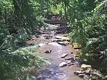 Cascade Park is a nature park and former amusement park in New Castle, Pennsylvania. The park was originally known as Big Run Falls when the area on which the park sits was purchased by Col. Levi Brinton in 1892.[1] Power companies at the turn of the twentieth century found they could make profits developing amusement parks, so in 1897, the New Castle Traction Company (later known as the Pennsylvania Power Company, or Penn Power) bought the property from Col. Brinton.[1] When the company held a contest for the park's name, ten-year-old Regina Norris won ten dollars for submitting the name Cascade Park. The park opened on May 29, 1897.[2] The park was accessible not only via local trolley service but also via the Pittsburgh, Harmony, Butler and New Castle Railway, which later became the Harmony Short Line Motor Transportation Company' bus company.[3][4]