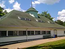 A year after the park opened, its owners added a carousel, baseball park, theater, and dance pavilion, of which the pavilion is still standing. At the time, the dance pavilion was the largest in the state of Pennsylvania.[2] The park's first roller coaster, the Toboggan, was also installed at this time.[2] The year 1899 saw the addition of a zoo, picnic grove, and lake, the latter being created by damming the Big Run Creek which ran through the park.[2] In 1922, the park's original carousel was replaced with one built by the Philadelphia Toboggan Company, a carousel which previously was located at Idora Park, Youngstown.[2] A new roller coaster, The Gorge, was also added at around this same time, and by 1925, the park's area had been expanded to 138 acres (0.56 km2) and its midway had 17 rides.[2] Among the rides were: