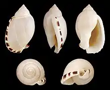 | Five views of a shell of Casimaria erinanceus | |