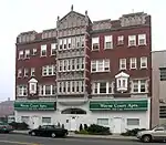 The Naomi Apartments is an Italian Renaissance apartment building, constructed in 1924 and designed by Pollmar and Ropes. It is a six-story brick structure measuring 60 feet by 166 feet. The facade is symmetrical, with a stone-covered first floor and stringcourse above, separating it from the upper floors. The windows are regularly arranged, with a flat arch overtop. The sixth floor has ornate arched window openings, with a cornice frieze below the floor and another decorative cornice above.[2] The building has undergone $17 million renovation and restoration beginning in 2014 and has reopened in 2017.