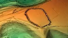 Castle Rings is a univallate hill fort in the parish of Donhead St Mary in Wiltshire, England.[1] The site is a Scheduled Ancient Monument.[2] Castle Rings has been dated to the Iron Age and is at an altitude of 228 metres (748 ft) upon Upper Greensand sandstone beds.[1] The bulk of the fort enclosure lies within the boundaries of Donhead St Mary parish but some of the outlying earthworks are in the neighbouring Sedgehill and Semley parish.[3] In the mid-1980s a metal detectorist unearthed a hoard of stater coins of the Durotriges tribe within the hill fort.[4]