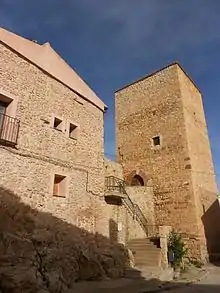 The castle had three towers, one of which is currently in ruins, and another which hosts exhibitions. The tower located on the upper level has a stone base on which stands a mud-based, badly damaged body. The second tower built in masonry and mud, is better preserved and is used for housing. This tower has a wall that unites it with the third tower and is located in the lower level of the walled enclosure. The keep is built in masonry and ashlar, and contains saetera [2] In the face that looks towards the intramural opens a gateway with arc providing access to "The Homage Tower", formed by a slightly pointed arch.