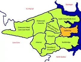 Text is licensed by State of New South Wales (Department of Planning and Environment) under CC-BY 4.0 licence. - ↑ https://profile.id.com.au/willoughby/about?WebID=120 Willoughby City Council Community Profile: Castlecrag.