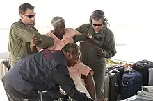 In addition, the government of the United States issued orders for deployment to the U.S. Army's 1st Battalion, 73rd Infantry from Fort Bragg, North Carolina, which is scheduled to deploy along with the aircraft carrier USS Carl Vinson.[39] The U.S. Navy also announced on 13 January 2010 that the hospital ship Comfort and amphibious helicopter carrier Bataan will be deployed to assist in the humanitarian relief efforts.[40] The American government also announced that it would provide $100 million for the aid effort in Haiti.[41] Partners in Health, the largest health care provider in rural Haiti, also provided aid from Port-au-Prince.[42] Despite the domestic and international relief efforts, many Haitians in the initial days after the earthquake did not have access to health care.