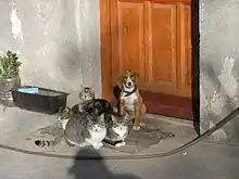 Cats and dogs have a range of interactions.[1] The natural instincts of each species lead towards antagonistic interactions, though individual animals can have non-aggressive relationships with each other, particularly under conditions where humans have socialized non-aggressive behaviors.