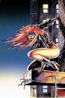 In the early 1980s, the publisher Dečje novine and editor Sibin Slavković called for comic strips that would resemble American superhero comics for their magazine YU Strip.[1] Of the creators solicited, only Branislav Kerac and Svetozar Obradović responded. Their suggestions included Gea, a Red Sonja-type character, Cyborg, a Terminator-type character, and Cat Claw, a female version of Spider-Man.[1] Kerac stated in a 1991 interview: "I tried to imagine what the wet dream of every male pig would look like, and Cat Claw was the answer".[2] Kerac penciled several pages and they were shopped around the Belgrade inkers, but most of them disliked the concept of the comic.[1] Kerac ended up performing both duties.[1] He was busy with his Kobra comic book, so one of the characters had to be dropped.[1] Kerac chose to retain Cat Claw, which allowed him to emulate the work of one of his idols, John Romita.[1] The first episode, "Bane Claws", written by Obradović, was very much in the Marvel Comics style.[1] It even included a cameo appearance of Peter Parker.[1] Soon after, Obradović, due to various obligations, had to drop his work on Cat Claw.[1] After a short cooperation with writer Slavko Draginčić,[3] Kerac became the complete author of the comic[1] As a writer, Kerac started to incorporate humor and allusions to various films, other comics and rock music, mostly heavy metal, into stories,[1] which led some readers and critics to view Cat Claw as a parody of superhero comics.[1]