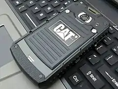 ![]() Rear of CAT B10 smartphone, showing durable casing materials | |
