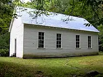 By 1900, the population of Cataloochee had grown to 764. The Cataloochee School was too small to handle the growing population, and in 1906 the township sent a delegation consisting of Hiram and George Caldwell and Steve Woody to Waynesville to demand a newer, larger school. Officials in Waynesville rejected them, however, claiming they didn't pay enough taxes. On the way home, the three drank a bottle of whiskey, and decided to burn down the schoolhouse. After removing the furniture, they set the building ablaze, and moved classes to the old Caldwell cabin. They then re-petitioned the government in Waynesville, claiming their school had burned down, and asked for a new one. Due to North Carolina's mandatory attendance laws, the government had no choice but to comply.[18] Known as the Beech Grove School, the structure still stands today along Palmer Creek.
