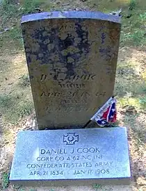 The Cook Cabin in Little Cataloochee was built by Dan Cook in the 1850s. It was dismantled in the 1970s after being vandalized, and restored to its original site in 1999. The ruins of Cook's applehouse (built by Cook's son-in-law Will Messer) are on the opposite side of the trail.