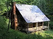 The Hannah Cabin in Little Cataloochee was built by John Jackson Hannah, the son of Little Cataloochee pioneer Evan Hannah. The cabin's chimney is one of only three surviving brick chimneys in the national park.[36]