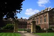 St Catharine's College is a constituent college of the University of Cambridge.[2] Founded in 1473 as Katharine Hall, it adopted its current name in 1860. The college is nicknamed "Catz". The college is located in the historic city-centre of Cambridge, and lies just south of King's College and across the street from Corpus Christi College. The college is notable for its open court (rather than closed quadrangle) that faces towards Trumpington Street.