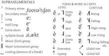 A list of suprasegmental features which phonologists believe need to be worked on in the theory of articulatory phonology.