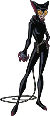 Catwoman appears in The Batman (2004), voiced by Gina Gershon. The character design used was based loosely on the then-current costume used in the comic books, through with blue eyes instead of green. The initial episode featuring Catwoman establishes her as working as a charity fund raiser in her identity of Selina Kyle. With the majority of her remaining appearances focusing on her activities only as Catwoman, an origin for the character is never provided.