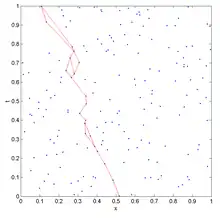In analogy to the path integral formulation of quantum mechanics, one approach to developing a quantum dynamics for causal sets has been to apply an action principle in the sum-over-causal sets approach. Sorkin has proposed a discrete analogue for the d'Alembertian, which can in turn be used to define the Ricci curvature scalar and thereby the Benincasa–Dowker action on a causal set.[11][12] Monte-Carlo simulations have provided evidence for a continuum phase in 2D using the Benincasa–Dowker action.[13]