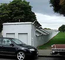 Carisbrook, the city's former main rugby union venue and a former Test cricket ground, was located at the eastern end of the suburb between The Glen and the Hillside Railway Workshops prior to its demolition.[52] It was the home of Otago Rugby Union until a new stadium opened in North Dunedin (the Forsyth Barr Stadium at University Plaza) in August 2011. The new stadium is the new home of the Otago Rugby Union and Highlanders Super Rugby franchise, and met with some opposition within Dunedin, with objections focusing largely on the cost.[53]