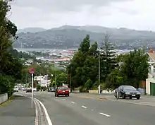 Until the construction of the bypass, South Road and Caversham Valley Road formed the main route out of Dunedin to the south. State Highway 1 followed South Road through the main retail area, then followed Caversham Valley Road to Lookout Point.[90] Above its retail area, South Road winds around the flank of Calton Hill; Caversham Valley Road forms a straighter, steep route that originally continued from the end of South Road's retail area. For this reason, the part of South Road running through the retail area is also sometimes referred to as part of Caversham Valley Road. Improvements to Caversham Valley Road to ease congestion and increase safety began in 2011.[91] A junction at the north end of Caversham's main retail area connects South Road with the bypass.[89]
