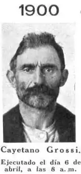 Cayetano Domingo Grossi (1854 – April 6, 1900) was the first known serial killer in Argentinian history. He murdered five of his own neonatal children that were born as the result of his rape of his two stepdaughters.[1] For this reason he was sentenced to death and executed by firing squad on April 6, 1900.[2][3]
