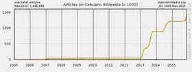 - ↑ "Cebuano Wikipedia, Wikidata:Statistics/Wikipedia". Wikidata. 2015-07-17. Retrieved 2016-01-16.