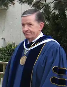 Cecil Osborn Samuelson Jr. (born Aug 1, 1941) is an American retired rheumatologist[1] and professor of medicine who served as the 12th president of Brigham Young University (BYU) from 2003 to 2014. Samuelson is an emeritus general authority of the Church of Jesus Christ of Latter-day Saints (LDS Church), a former dean of the school of medicine at the University of Utah, and a former senior vice president of Intermountain Health Care (IHC).[2][3] While he was president at BYU, Samuelson pushed professors and students to raise their expectations and encouraged mentored learning. During his presidency, student enrollment limits stayed constant, new sports coaches were hired, new buildings were built, and a hiring freeze during the Great Recession reduced faculty.
