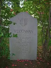 Cedar Hill Cemetery in Hartford, Connecticut is located at 453 Fairfield Avenue. It was designed by landscape architect Jacob Weidenmann (1829–1893) who also designed Hartford's Bushnell Park. Its first sections were completed in 1866 and the first burial took place on July 17, 1866. Cedar Hill was designed as an American rural cemetery in the tradition of Mount Auburn Cemetery in Cambridge, Massachusetts.[3]