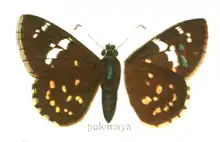 2. Beccaloni, G.; Scoble, M.; Kitching, I.; Simonsen, T.; Robinson, G.; Pitkin, B.; Hine, A.; Lyal, C., eds. (2003). "Celaenorrhinus pulomaya". The Global Lepidoptera Names Index. Natural History Museum. Retrieved April 19, 2018.