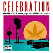 "Celebration" is a song by American rapper Game featuring fellow American rappers Tyga, Wiz Khalifa, & Lil Wayne and American singer Chris Brown, released as the lead single from the former's fifth studio album Jesus Piece. "Celebration" premiered on Los Angeles' Power 106 on August 22, 2012. The song samples Bone Thugs-n-Harmony's hit single "1st of tha Month", which in return samples the Chapter 8 and Anita Baker song "I Just Want to Be Your Girl".