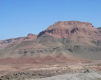 Ages were determined by 40Ar/39Ar analysis on plagioclase.[10][11][12] These data show indistinguishable ages (199.5±0.5 Ma) from Lower to Upper lava flows, from central to northern Morocco. Therefore, CAMP was an intense, short magmatic event. Basalts of the Recurrent unit are slightly younger (mean age: 197±1 Ma) and represent a late event. Consistently, the Upper and Recurrent basalts are separated by a sedimentary layer that locally reaches a thickness of circa 80 m.