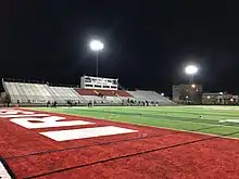 The stadium received a complete overhaul renovation in 2007. The new stadium includes permanent seating for 6,500 spectators and FieldTurf for its playing surface. Also included in the renovation was a state-of-the-art weight room, a home locker room equipped with 3 flat-screen TVs, coach's offices, and a team meeting room all located under the home side bleachers. It was constructed on the site of the existing complex and includes a full press box with hospitality suites that accommodates 120 people. A 450-seat stadium club section with chair-back seats is located at midfield on the home side. Construction began in the spring of 2007 and was complete in time for the 2007 homecoming game.