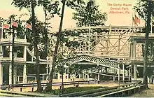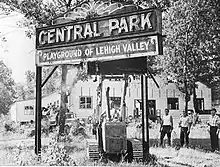 When the Allentown-Kutztown Traction Company completed its trolley line from Allentown to Kutztown in 1899, the company added a stop at Dorney Park & Wildwater Kingdom, Central Park's competitor in the area. However, Central Park held its own.[2] In 1922 the Manhattan Hotel was torn down and in its place the Manhattan Auditorium was built. An attempt was made in 1933 to establish the first supermarket in this area, but was unsuccessful. It was used for marathon dancing, later for auto shows, home shows, roller skating, to name a few.[1]