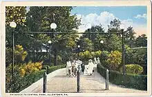 Central Park's origins date to 1868 when J. Frank Reichart laid out a race course north of the Allentown-Bethlehem turnpike (Hanover Avenue) which was opened for trotting and pacing from May to August. In 1872 the Rittersville Park Association was organized. The park was enlarged to 16 acres and was known as Manhattan Park.[1]