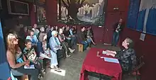 In addition to the usual days of storytelling, musical events and lectures, 2012 was punctuated by signings with Séverine Pineaux and Jerome Lereculey.[26] During the Printemps des Légendes en 2012 (Spring of Legends organised at Monthermé the centre was guest of honour,[27] making camp and mounting an exhibition.[28] According to the French newspaper L'Union, this festival in the Ardennes was a great success.[29] The guests of honour at the Rencontres de l'Imaginaire 2012 were Arleston and Guillaume Sorel.[30]