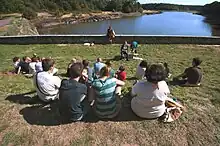 From its inception in 1988, the Centre de l'Imaginaire Arthurien has led in multiple areas. Its eclectic exhibitions include modern works as well as Preraphaelite paintings. It organises (and hosts) spectacles, storytelling,[7] concerts, conferences, guided tours in the forest and educational presentations for school groups. The centre participates in drafting catalogues, educational projects, journées du patrimoine (heritage days)[8] and outreach in schools and universities, assists in documentary research, and compiles bibliographies and iconographies. There are many scholars from different countries among its members.[9]
