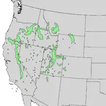 Natural range of Cercocarpus ledifolius