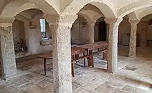 Built using large blocks of tufa stone for some parts and rubble for other parts, the main building has high chimneys, three monumental gothic fireplaces, an échauguette, a chapel, and cellars.[1] The domain also comprises a dovecote, a French formal garden, and a pond.[1]
