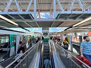 Châtillon–Montrouge (French pronunciation: [ʃɑtijɔ̃ mɔ̃ʁuʒ]) is the southern terminus of line 13 of the Paris Métro and the eastern terminus of tramway T6. It is an elevated station located on the border between the communes of Châtillon and Montrouge in Hauts-de-Seine.