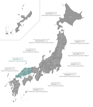![]() Map of House of Representatives proportional blocks, with the Chūgoku block highlighted | |