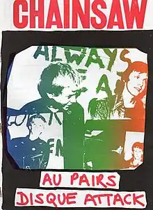 Chainsaw, a punk zine edited by "Charlie Chainsaw" was published in suburban Croydon in 1977 and ran to fourteen issues before ceasing publication in 1984. A hand-lettered 'n' became a stylised trademark in articles after the 'n' key broke on the editor's typewriter. In addition to a free flexi disc promoting two or three up-and-coming punk bands, 1980s issues featured cartoon strips and two innovative colour covers by Michael J. Weller. 1970s issues featured the cartoon strip 'Hitler's Kids', authored by Andrew Marr using punk nom-de-plume "Willie D" at the beginning of his successful journalistic career.[1] Charlie Chainsaw formed the band Rancid Hell Spawn when the punk zine discontinued.