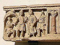 The first tier displays several purely Hellenistic scenes, of which the one on the far right is by far the best preserved.