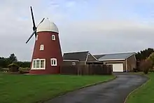 A mill has been recorded on the site since 1289.[2] A windmill was marked on John Norden's map dated 1607, John Speed's map dated 1611, Joan Blaeu's map dated 1645 and John Ogilby's map dated 1675.[3] The Chalton mill was built in the early nineteenth century.[1] In the 1950s it was threatened with demolition but a preservation order was placed on the mill by the local council.[4] Circa 1978 permission was given for the mill to be incorporated into a new-build house.[5] The converted mill was awarded a Certificate of Merit by the Petersfield Society.[4]