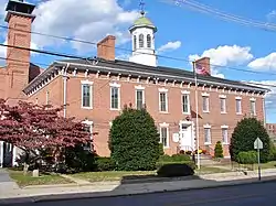 Chambersburg was incorporated on March 21, 1803,[37] and declared the County Seat when the State Assembly established a formal government. The first courthouse was John Jack's tavern on the Diamond (town square) in 1784, with a permanent courthouse built in 1793, and the first county jail built 1795.[20] The "Old Jail" was built in 1818, survived the fire of 1864 and is the oldest jail building in Pennsylvania. It was originally used as the sheriff's residence and had the longest continuous use of any jail in the state, operating until 1971. Today the Old Jail is a museum and home to the Franklin County – Kittochtinny Historical Society.[38] The county's gallows still stand in the jail's courtyard.[39] From 1786 to 1879 there were five executions in Franklin County totaling six 6 felons – five for murder and one for rape.[40]
