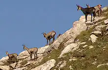 The chamois (Rupicapra rupicapra) or Alpine chamois is a species of goat-antelope native to mountains in Europe (mostly in Southern Europe or around the Mediterranean region), from west to east, including the Pyrenees, the Alps, the Apennines, the Dinarides, the Tatra and the Carpathian Mountains, the Balkan Mountains, the Rila–Rhodope massif, Pindus, the northeastern mountains of Turkey, and the Caucasus.[2] The chamois has also been introduced to the South Island of New Zealand. Some subspecies of chamois are strictly protected in the EU under the European Habitats Directive.[3]