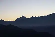 Chandrashila is the summit above Tungnath temple in India. It literally means "Moon Rock". It is located at a height of about 3,690 metres (12,110 ft) above sea level. This peak provides views of the Himalayas, including Nandadevi, Trisul, Kedar Peak, Bandarpunch and Chaukhamba peaks. There are various legends associated with this place. According to one such legend, this is where Lord Rama meditated after defeating the demon-king Ravana. Another legend says that the moon-god Chandra spent time here in penance.[1]